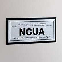 Previous Product Next Product NCUA Wall Sign with Backplate $30.00 999 in stock NCUA Wall Sign with Backplate quantity Add to cart SKU: NCUA Wall Sign with Backplate Category: NCUA Description Additional information Reviews (0) Description 7″w x 3″h NCUA sign mounted to a 7.5″w x 3.5″h back plate. Crisp, high definition imprint. Includes 2-sided tape on back side for wall mounting. Additional information Dimensions 7 × 3 in Reviews There are no reviews yet. Be the first to review “NCUA Wall Sign with Backplate” Cancel replyYour email address will not be published. Required fields are marked *Your rating * Rate… Perfect Good Average Not that bad Very poor Your review *Name * Email * Save my name, email, and website in this browser for the next time I comment. Related products Quick View Quick View NCUANCUA Heavy Duty Decal – 7×3 $22.50 Add to cart Quick View Quick View NCUA7w x 6-1/2h Wall Sign, Funds Available (Custom Copy) w/NCUA logo $40.00 Add to cart Quick View Quick View NCUANCUA Magnetic Sign Insert $57.50 Add to cart