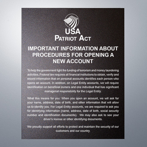 Patriot Act – Personal-Bus Accounts – 11×14 Magnetic