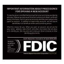 New Patriot Act sign with updated verbiage featuring the FDIC logo.